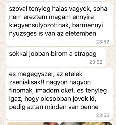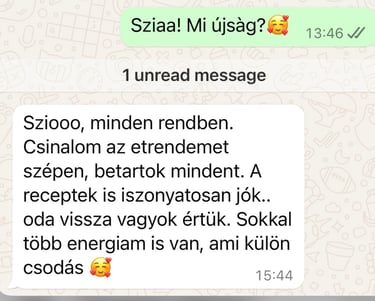 WhatsAppon szokott történni a kapcsolattartás, mivel itt kiemelt figyelmet tudok szentelni a vendégeimnek és minden fontos kérdésre tudok válaszolni. Alapvetően napi szintű kapcsolattartás van (az életmódprogramban), de ha te nem jelentkeznél, akkor is megkereslek 2-3 naponta.