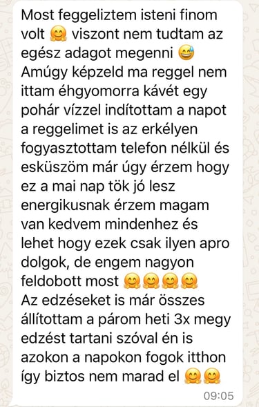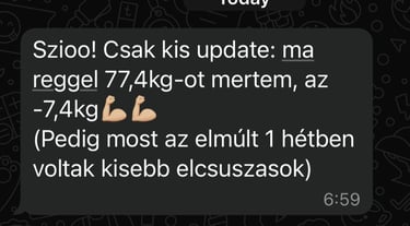 Természetesen előfordulhat, hogy valaki másképp látja magán a változást, mint ahogyan azt elképzelte. Ilyenkor sok tényező is közrejátszhat, nem feltétlenül a kalóriákon múlik minden. Az egyik fő előnye a napi szintű kapcsolattartásnak, hogy minden ilyet meg tudunk beszélni és módosítok, ha szükséges. Ameddig nincs sikerélmény, nem engedem el a kezed, ne aggódj!